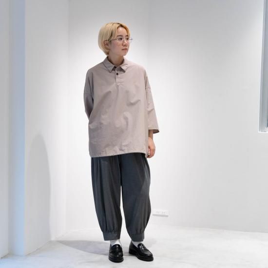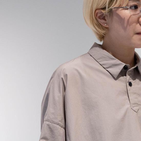 【レディース】 FIRMUM / コットン・ポリコアタイプライター素材 オーバーサイズ 半袖プルオーバーシャツ FRDGPO 「Light Beige」