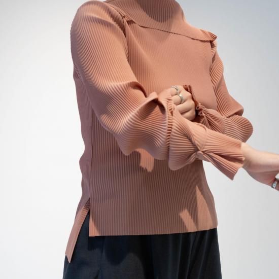 裾の前後差や袖口の仕様をブラッシュアップしたプリーツプルオーバーです。