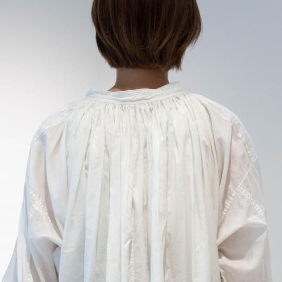 エシュペーらしい、首ぐり・袖・背中に細やかなギャザーが施されています。