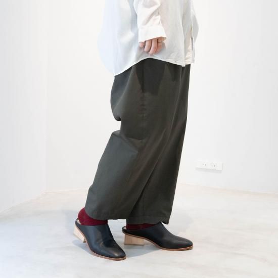 前脚1タック・ウエストゴム&紐でリラックス感のある履き心地。