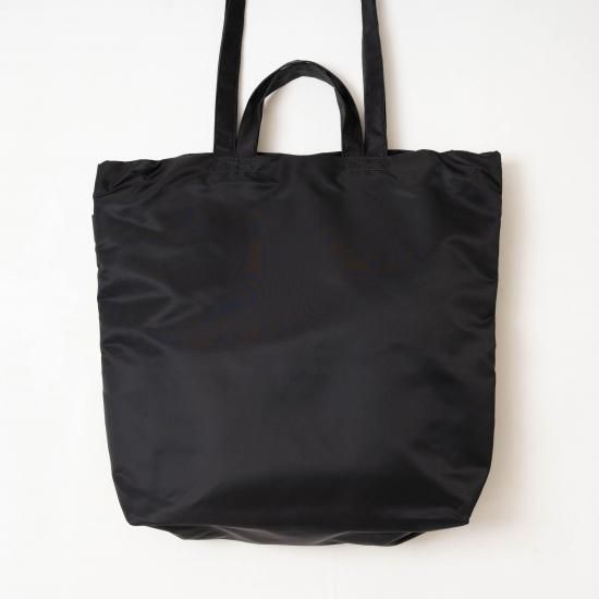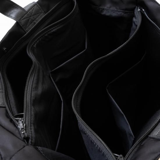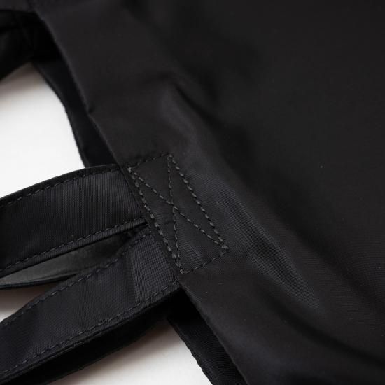 ノートパソコンや重い荷物を入れると、取っ手が取れてしまったり生地が破れてしまったりするか心配になりますが、強度のあるナイロン素材を2重構造にすることで、問題も解決。荷重のかかるPCスリーブを取っ手で支え、独立した外袋は荷重のかからない構造になります。