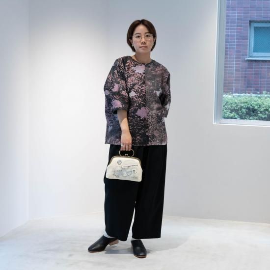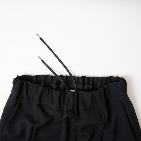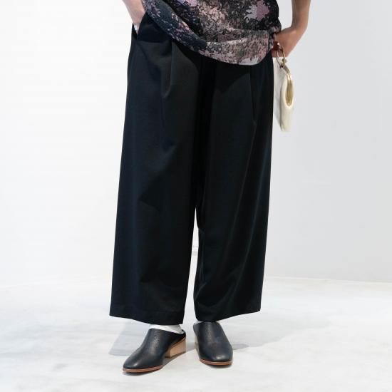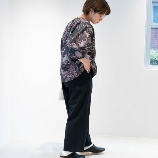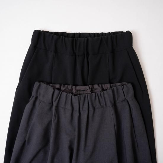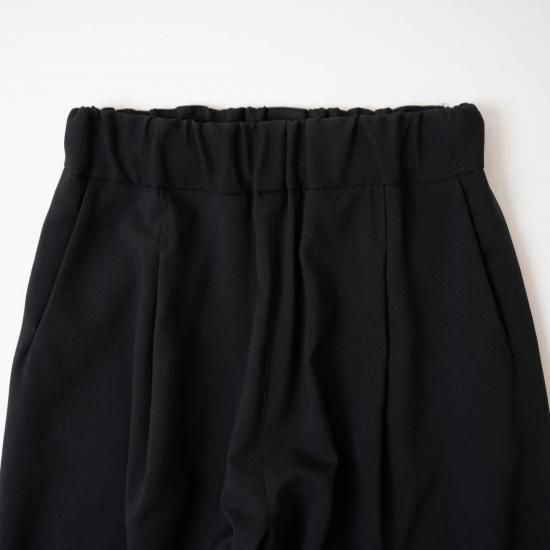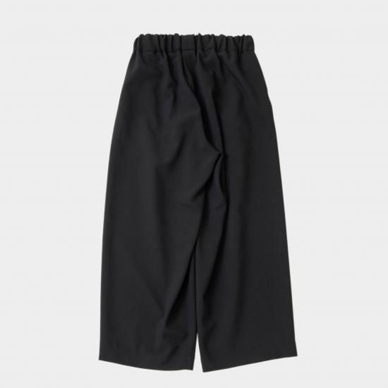 オクタグラムポリエステル・艶消平織素材を使用したワイドストレートパンツです。