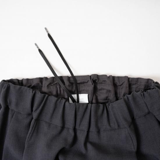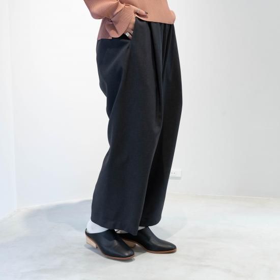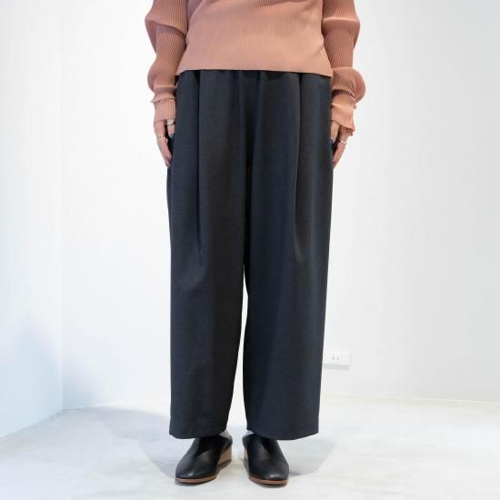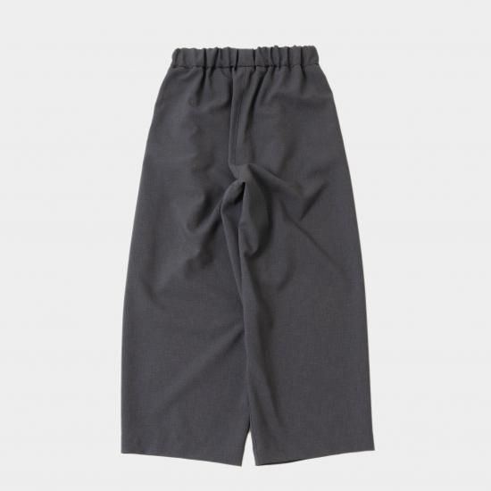 オクタグラムポリエステル・艶消平織素材を使用したワイドストレートパンツです。