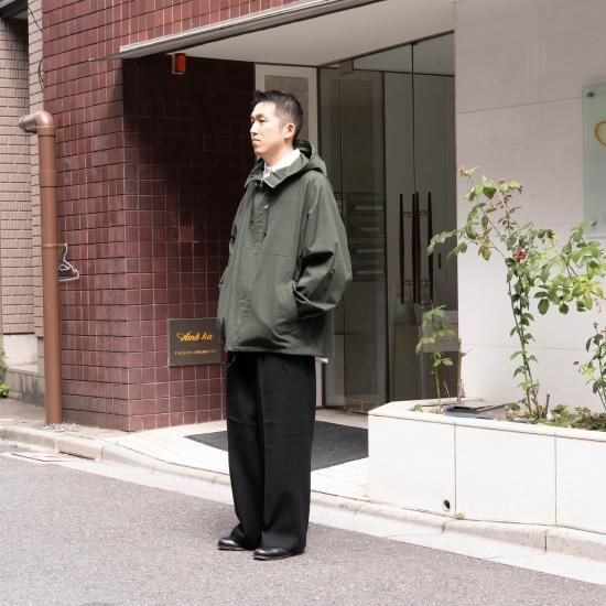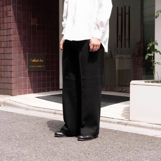 クラシックなドレストラウザーをベースに作られた、フロント2タック、後身頃ウエストゴム仕様のワイドトラウザーです。