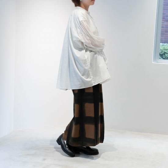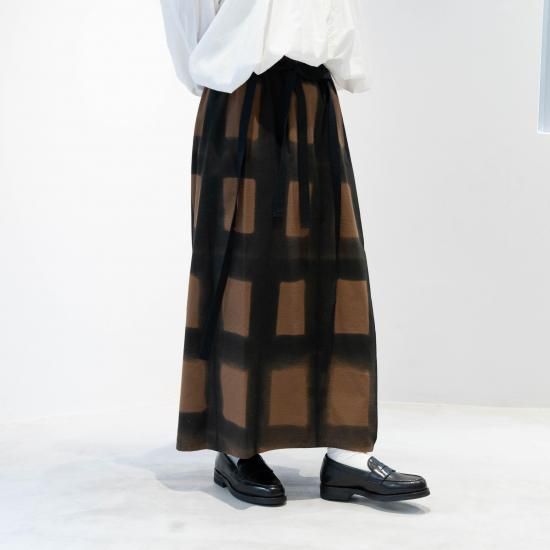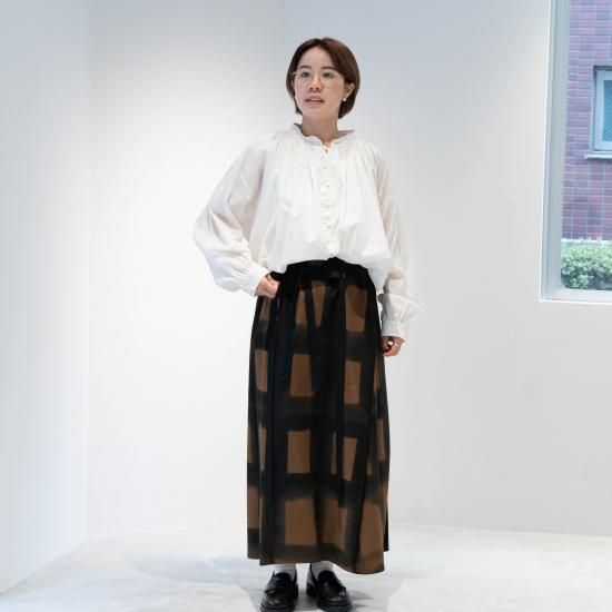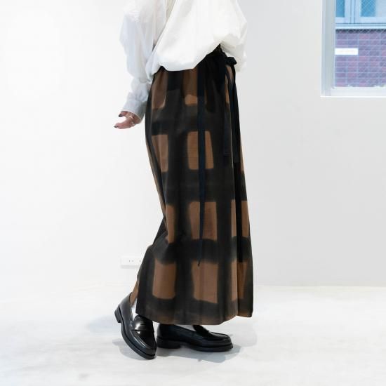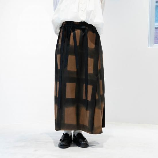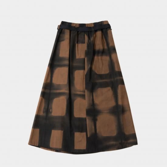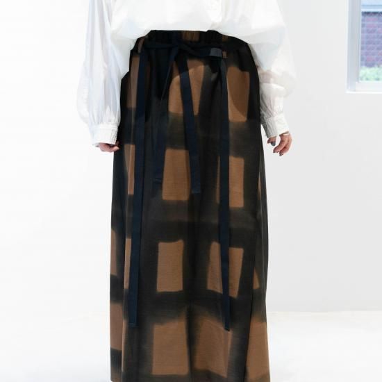 名古屋の伝統技法である、絞り染を施したやや肉のある綿を使用したスカートです。
