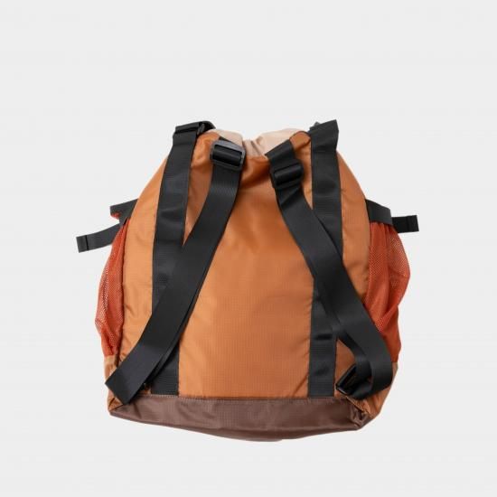 アウトサイドにはフロントに2ポケット、両サイドにメッシュ地ボトルホルダーを装備。