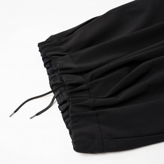 ストレッチ性があるポリエステル素材を使用した9分丈のゆったりテーパードパンツです。