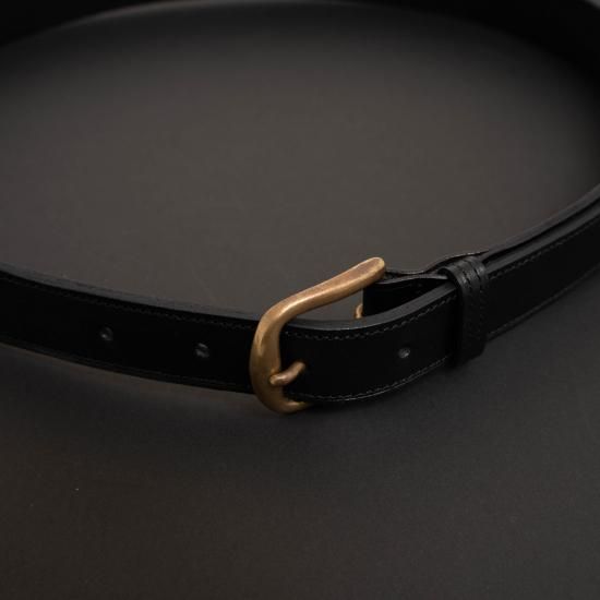 控えめな光沢感のアンティーク調バックルが滑らかなレザーとの相性が非常に良く、