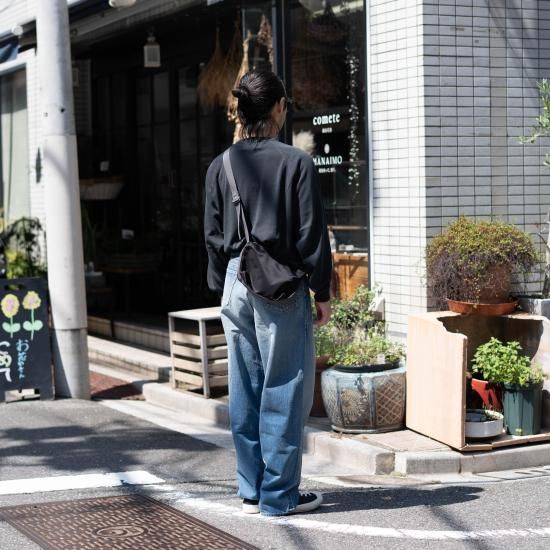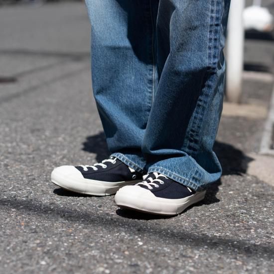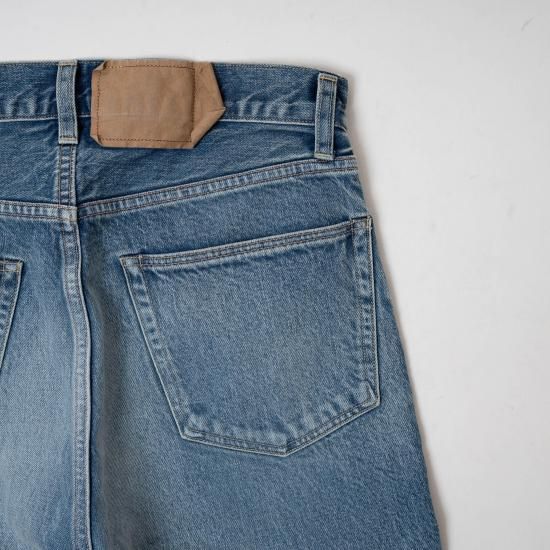 履き心地を考え、ワタリとヒップに少しだけ立体感とゆとりをもたせ、ストレートに見えるシルエットでバランスを取って仕立てています。