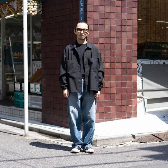 カジュアルなアイテムですがコンパクトな襟のサイズ感と素材感の印象を活かしたことで大人の雰囲気です。