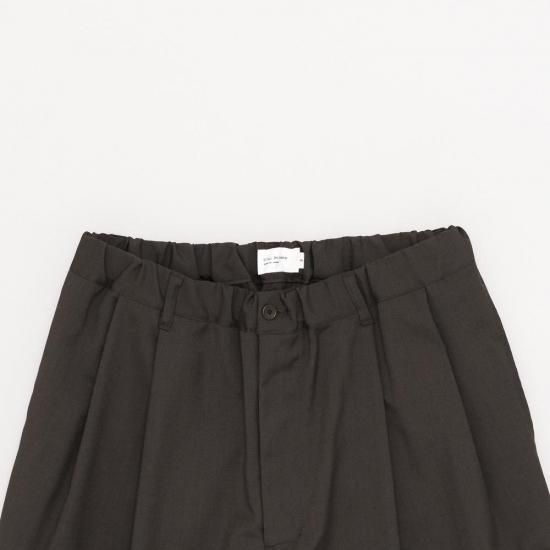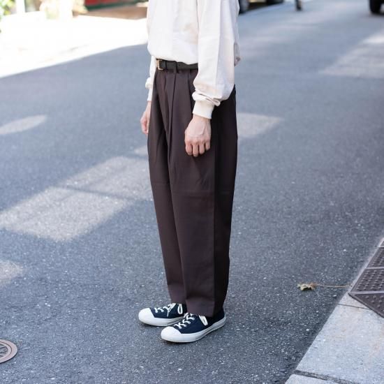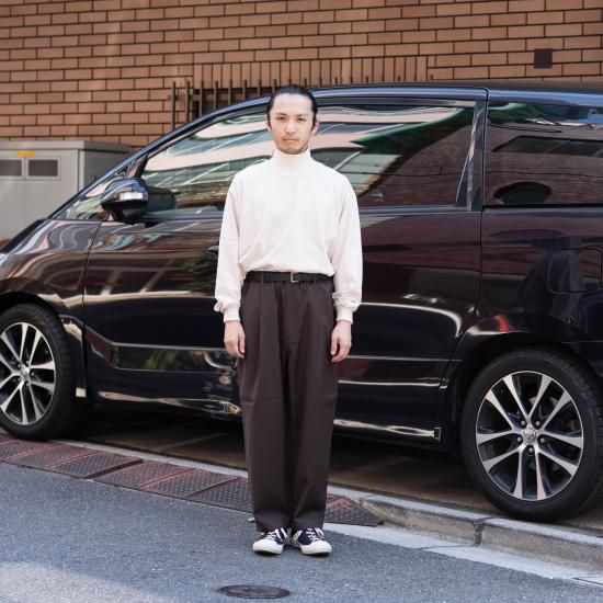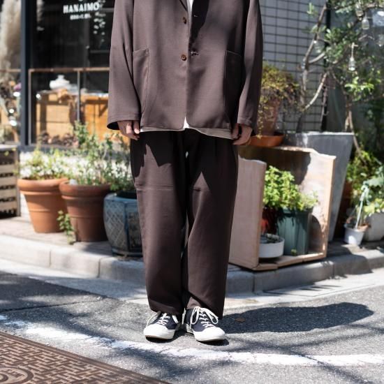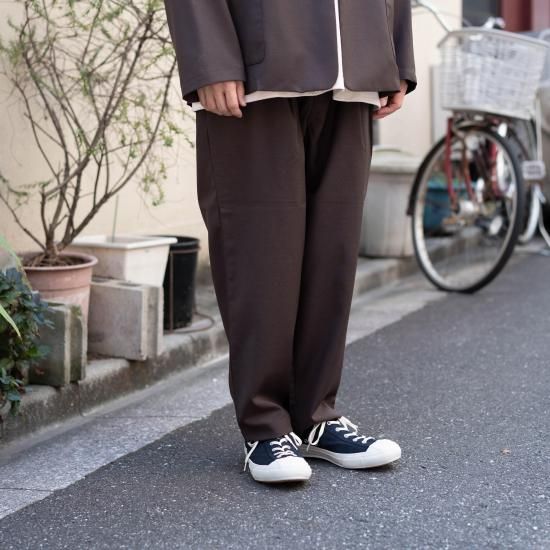 色に奥行が感じられる素材で、単体での着用はもちろん同素のジャケットまたはブルゾンとセットアップでの着用もおすすめです。