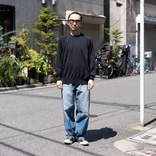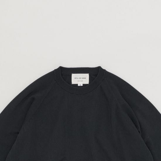 強撚コットンとシルクを撚糸したSTILL BY HANDオリジナル糸で作成した12Gラグランプルオーバーニットです。