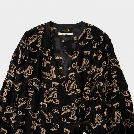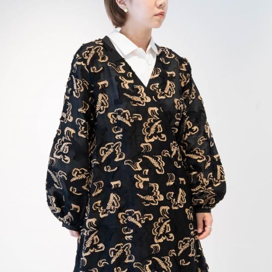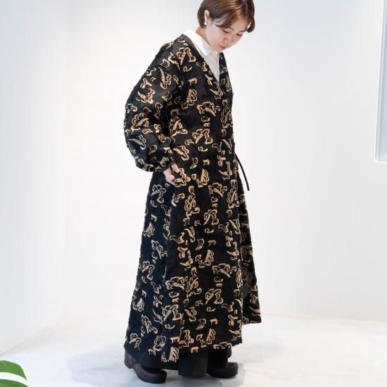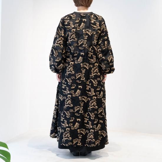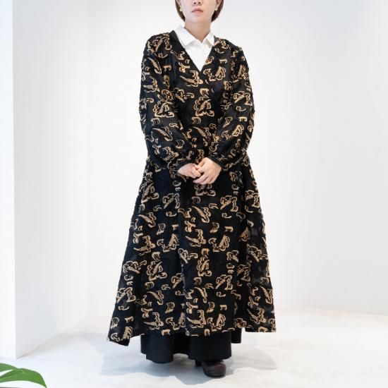 軽いロングコートのように羽織としても、リボンを留めてドレスとしても着ていただけます。