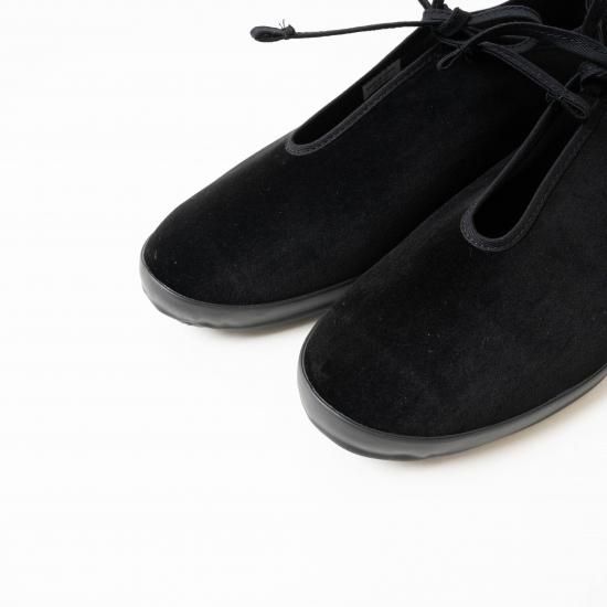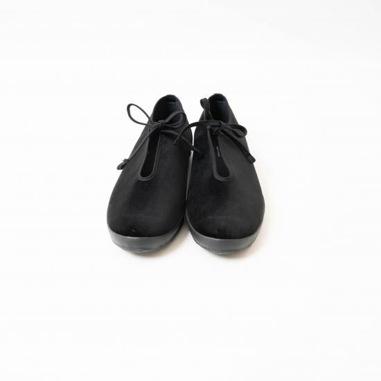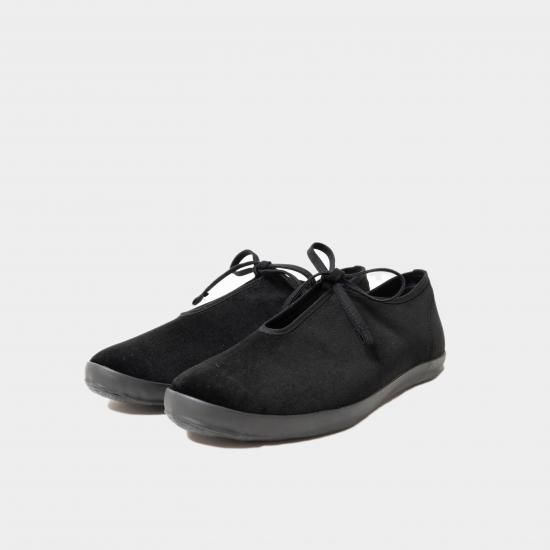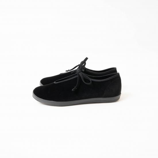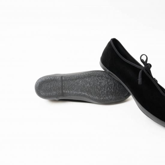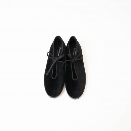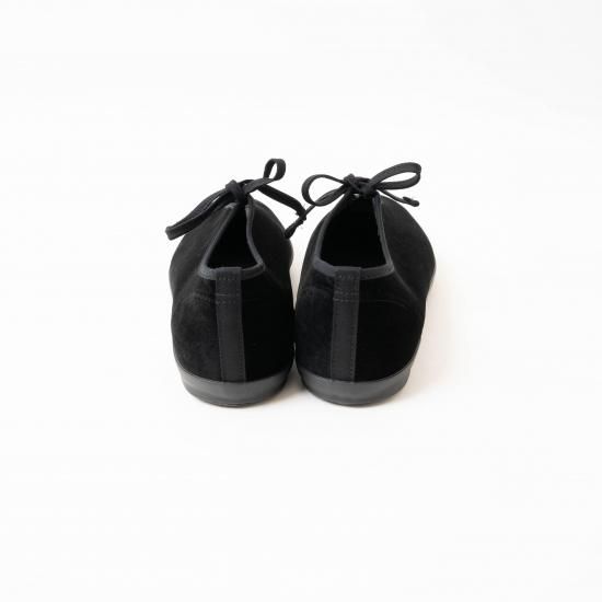 1枚もののアッパーに履き口のパイピングを靴紐にしたシンプルな1足。