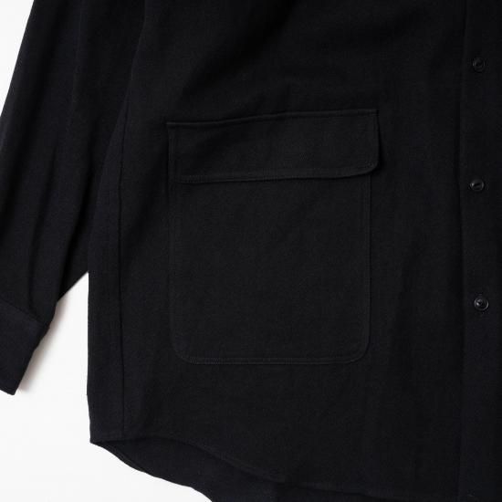 ルーズなドレスシャツに、ジャケットのフラップポケットを付けた、シャツの様なジャケットの様な不思議なデザインが特徴です。