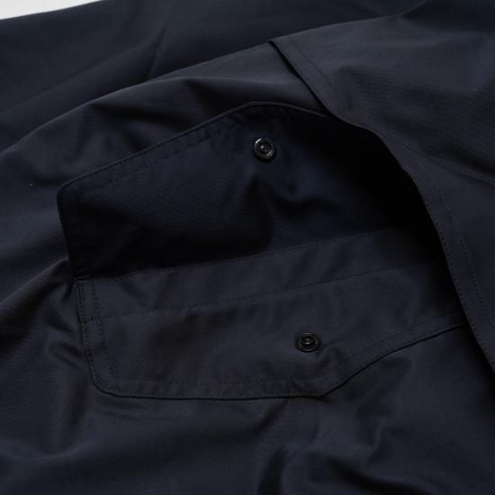 襟と前立ては二重構造にすることで、多彩な着こなしが可能に。内側の襟にはコード仕様のチンストラップを採用し、襟を立てた際のフィット感を自在に調整できるため、レイヤード時の煩わしさを軽減します。