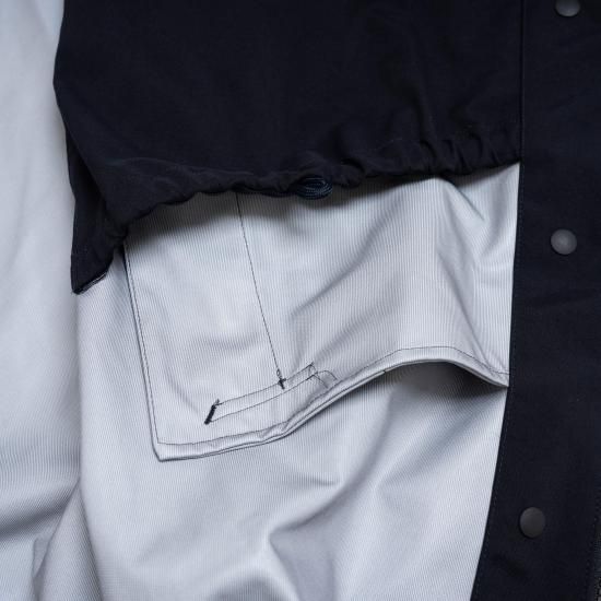 特殊ポリウレタンフィルムを挟んだ3層構造の生地により、高い防水性・耐水性・防風性を実現。