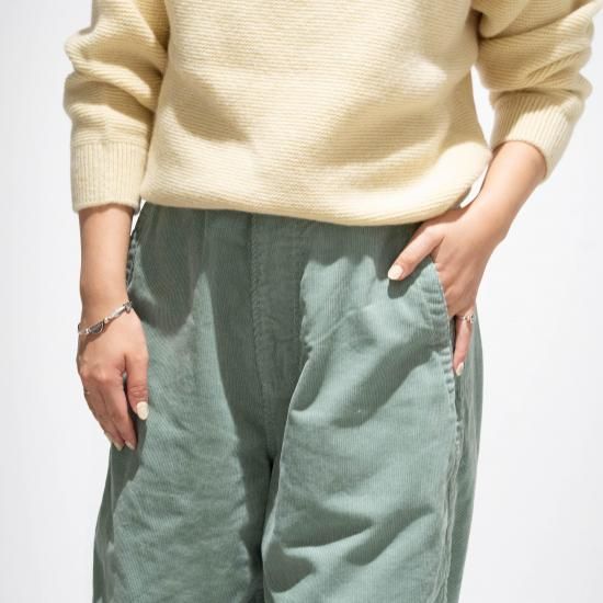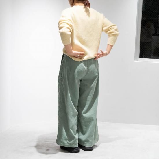 どんなトップスともバランスの取りやすいシルエットで、素材違いでお持ちになられる方が多いパンツです。