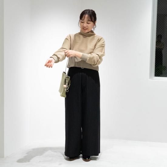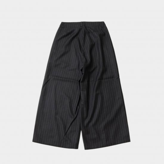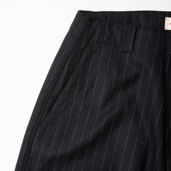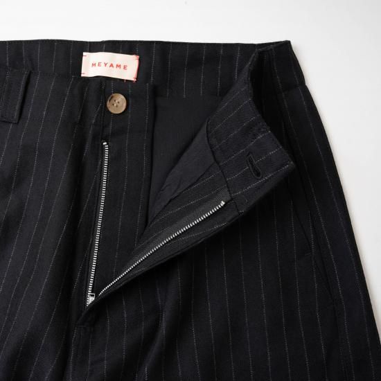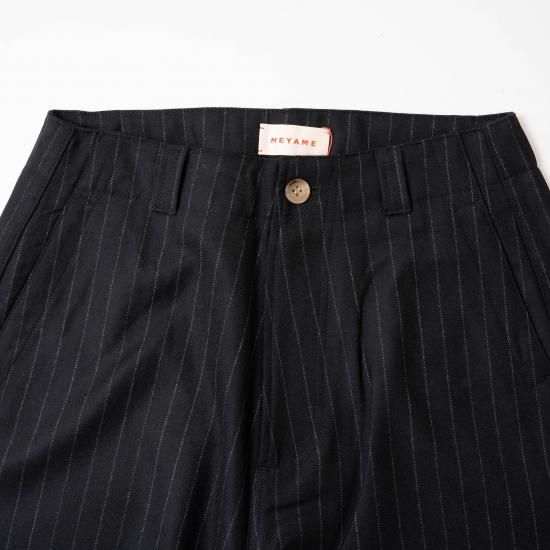 【レディース】 MEYAME / MERINO WOOL STRIPE SIDE LINE WIDE PANTS 「BLACK」