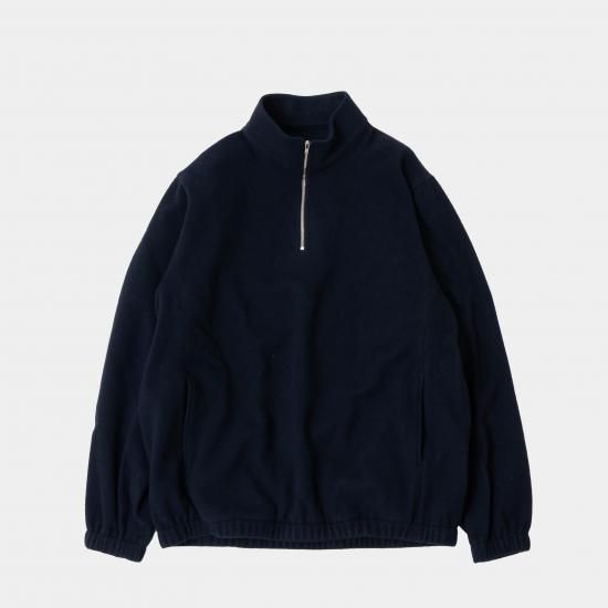 リラックス感のあるシルエットとシームポケット、袖口と裾にゴム、ハーフジップにはエクセラファスナーを使用しています。