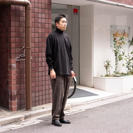 テーパードのきつい中太のシルエットですが、落ち感で中和され合わせやすいパンツです。