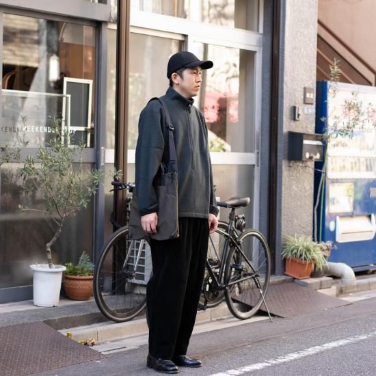 テーパードのきつい中太のシルエットですが、落ち感で中和され合わせやすいパンツです。