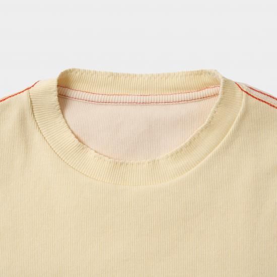 裾端・アームホール端は花びらのような細かいステッチでさりげない可愛さがあります。
