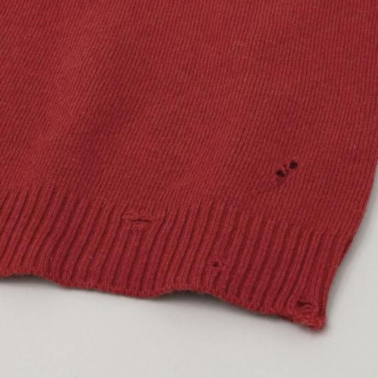 ダメージ加工ではなく編みの段階で糸を飛ばすテクニックを使いダメージ感を表現しています。