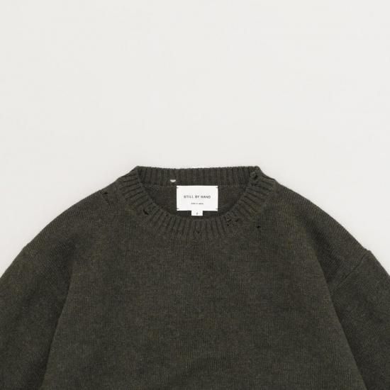 シェットランドウールを使用したダメージライクプルオーバーニットです。
