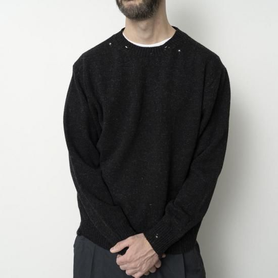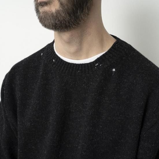 シェットランドウールを使用したダメージライクプルオーバーニットです。