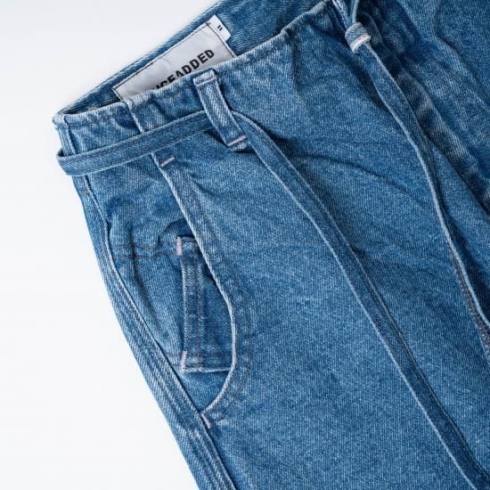 独特なフォルムで構成された形の13onz ワイドシルエットデニムパンツです。