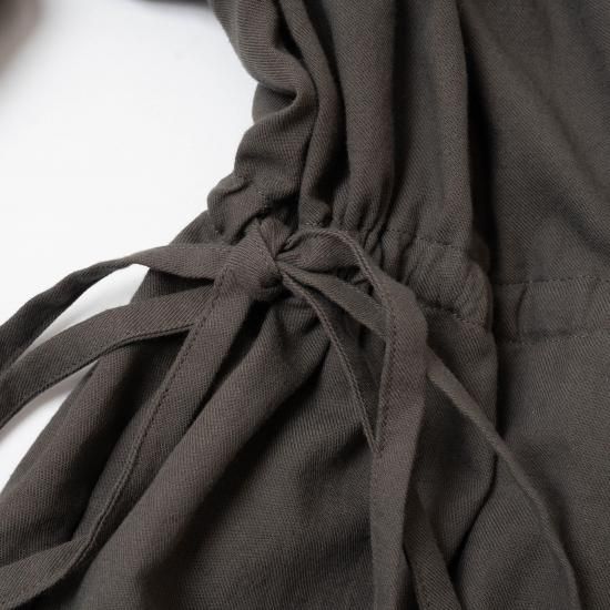 ウエストに共布スピンドルを通すことで、シルエットを大胆に変えれるにも特徴。