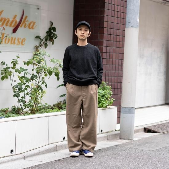 comm.archの秋冬セーターの顔と言っても良いクルーネックタイプ「Hand Framed Saddle B.B.」。