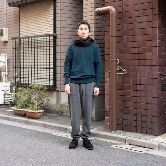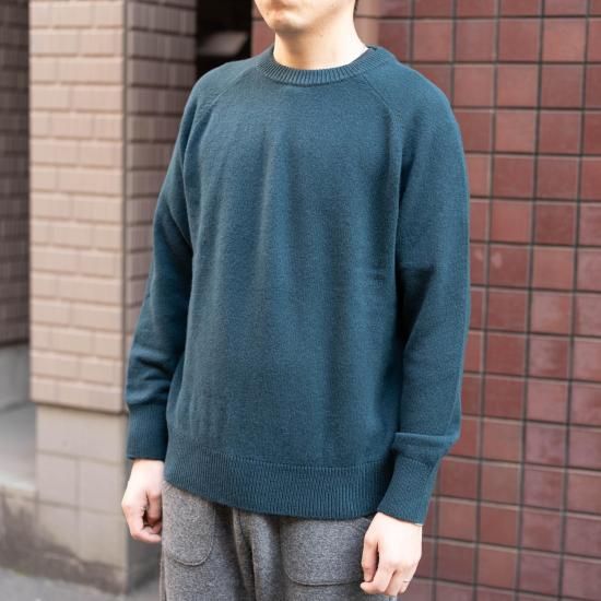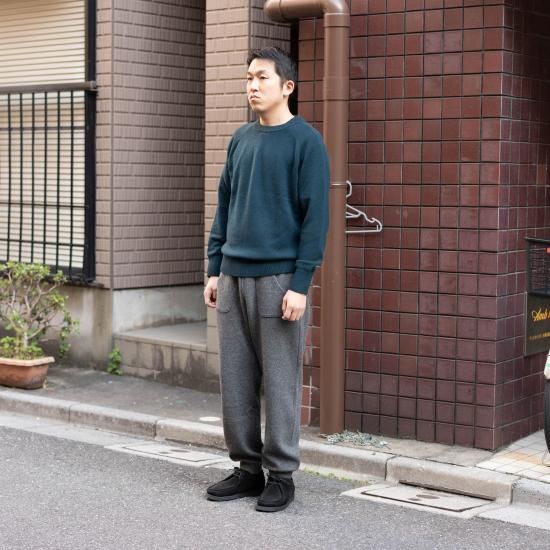 comm.archの秋冬セーターの顔と言っても良いクルーネックタイプ「Hand Framed Saddle B.B.」。