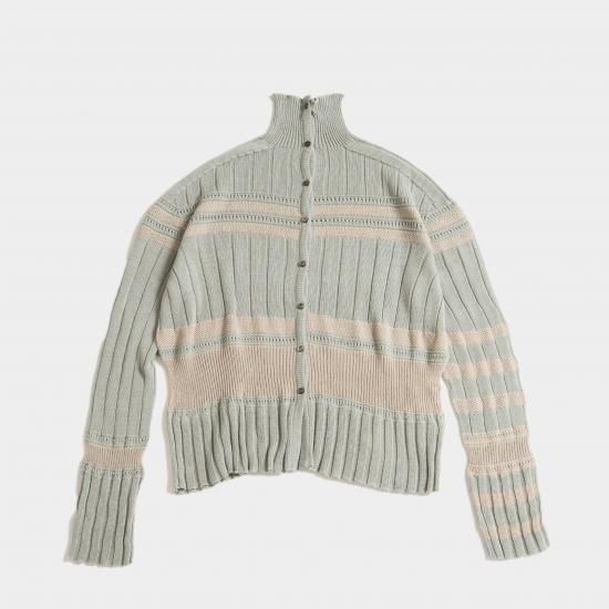 ウエストと袖にアイレット(並んだ穴の編み柄)を入れ、立体的で