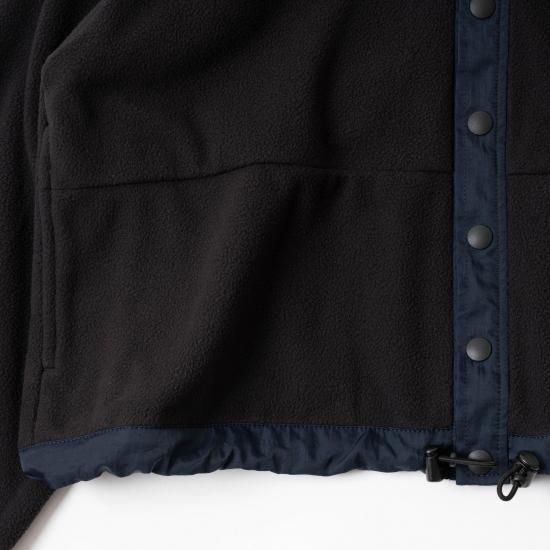 配色にしたパイピングがフリースの柔らかな印象の中にシャープさを加え、