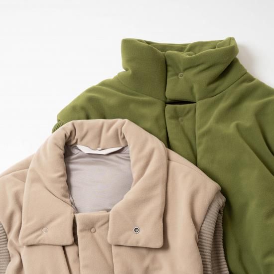 厚手の起毛生地にプリーツを施したフリースプリーツはスウェットのようなリラックス感のあるトップス・ボトムスから軽量の中綿アウターまで、ウィメンズ・メンズ共に広いレンジのアイテムをデザインしています。