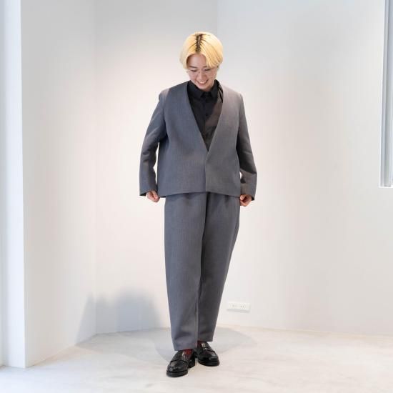 脇ハギが無いことで筒感が強く強調されるシルエット。