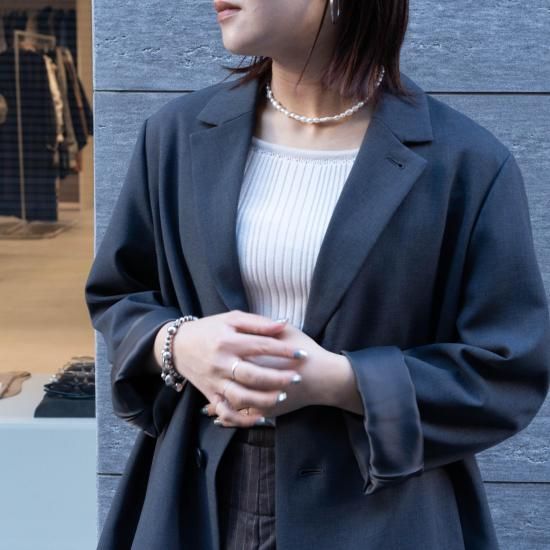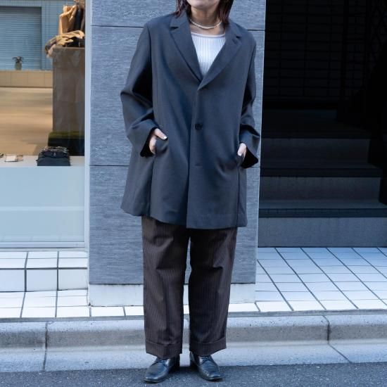 オクタグラムポリエステル・艶消平織素材を使用した、25AW新型のテーラードコートです。
