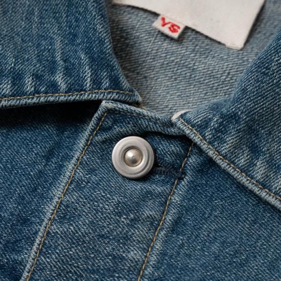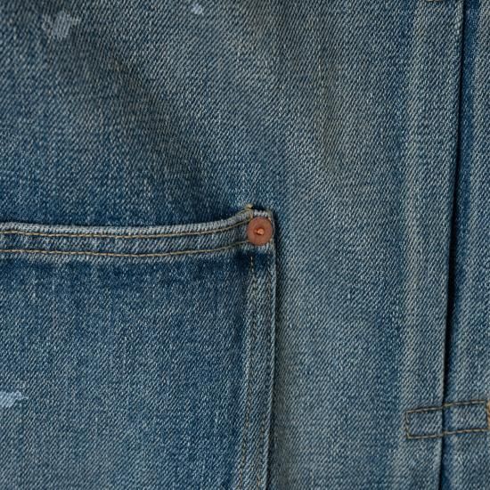 タックボタンは鉄製の無塗装。リベットは鉄製の銅メッキ。両者共に徐々に錆びて行く為、独特な風合いとルックスに育ちます。