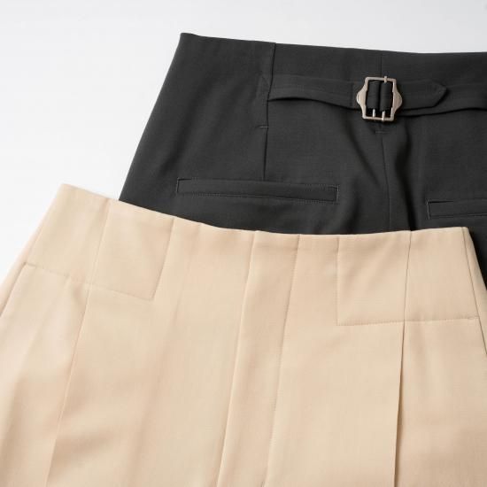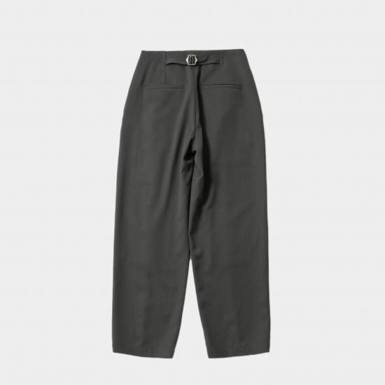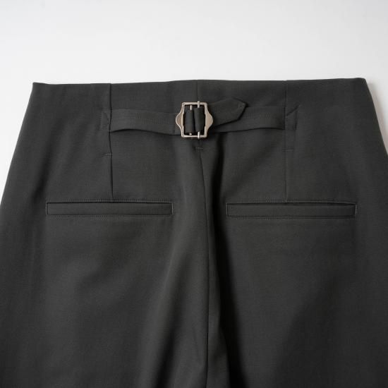 腰回りがすっきりとしたワイドテーパードのシルエット、ベルトループは無く後ろのタブで調節できる仕様です。