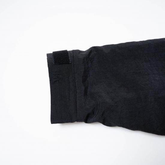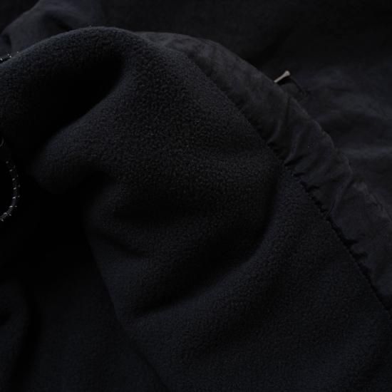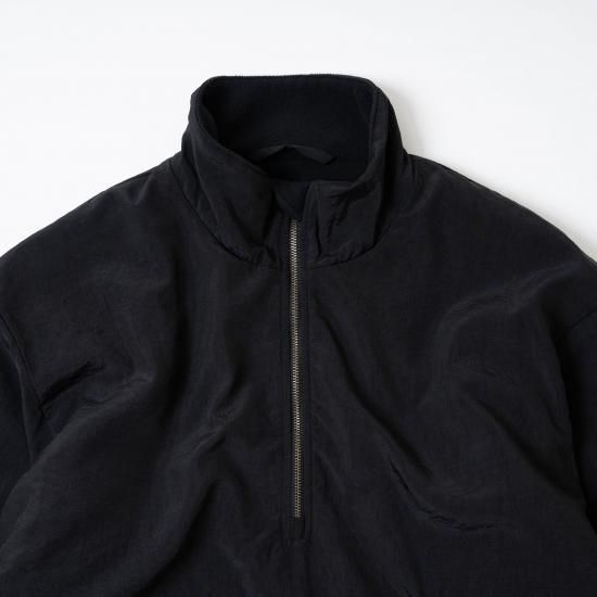 表面は、ナイロン × シルクの塩縮タフタ、裏面には軽量で保温力もあるリサイクルポリエステルフリースを搭載したプルオーバージャケットです。