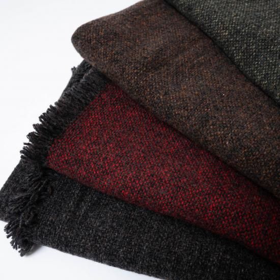 尾州の歴史ある機屋にて、旧式の織機を使用して製織した、異なる色の紡毛TOP糸をミックスさせた大判ストール。