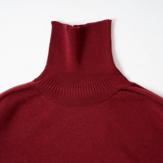 ホールガーメントの編み機を使用した無縫製のタートルネックニットプルオーバーです。