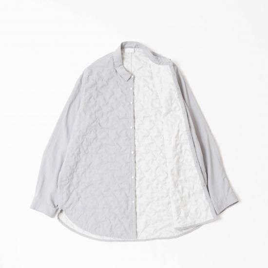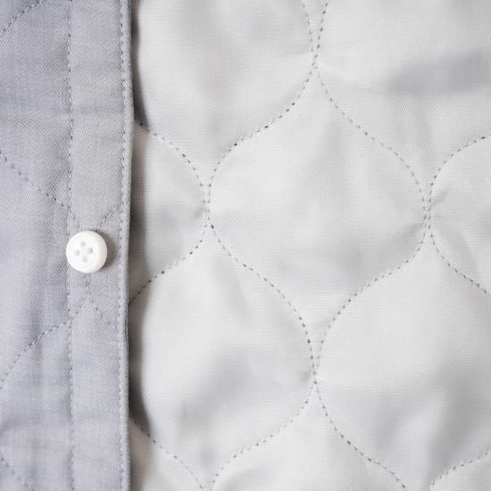 身頃はコマサーモを入れたキルティング素材で袖はツイル1枚仕立ての素材を組み合わせたシャツです。