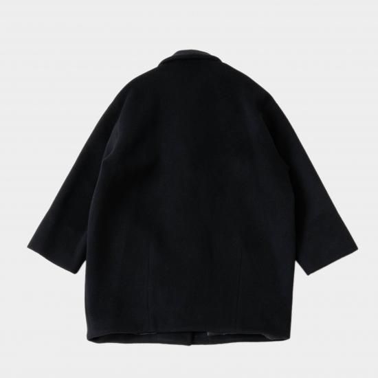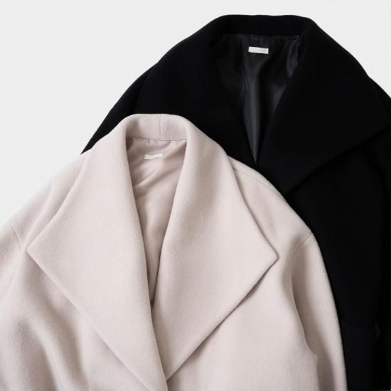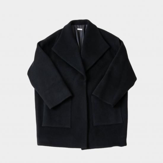 毛布にくるまったようなシンプルな形のコートです。