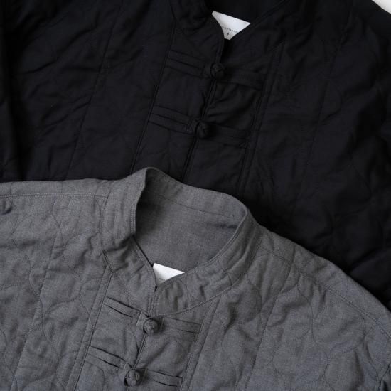 ポリエステル&レーヨン・クリア ツイル・キルト素材を使用したチャイナジャケットです。