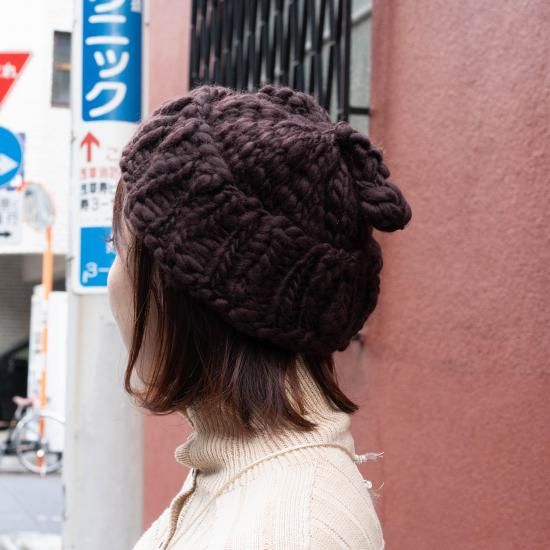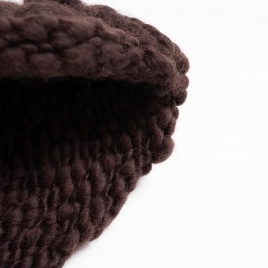 ソフトな手触りの極太スラブ糸を手編みで編み立てることにより、