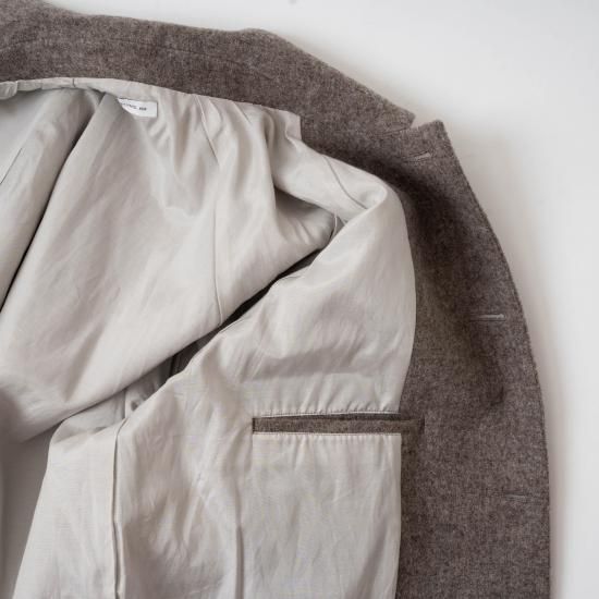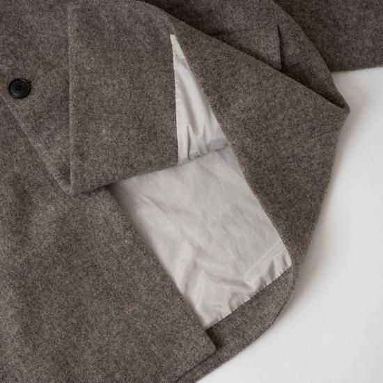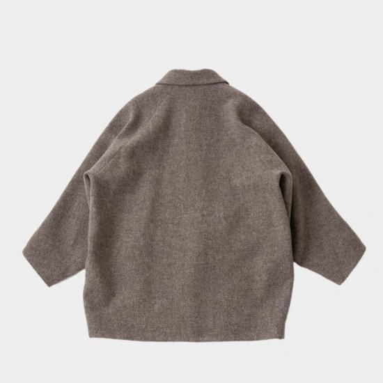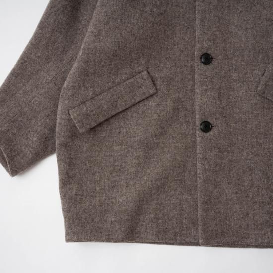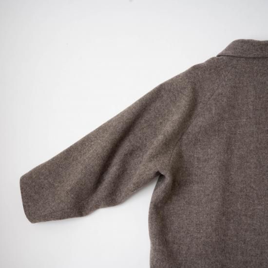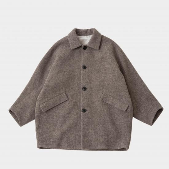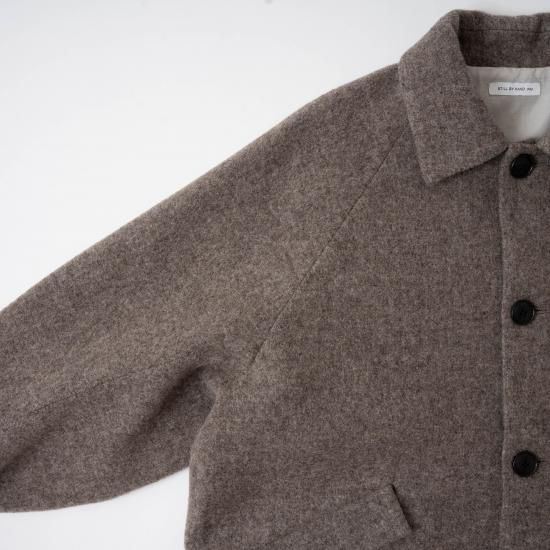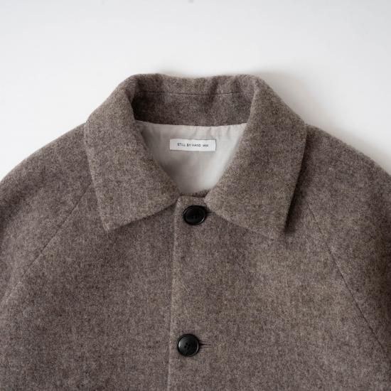 英国羊毛をブレンドした糸を使用しているため柔らかさとハリ感が共存した生地のハーフ丈のステンカラーコートです。