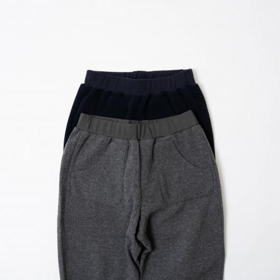 表側を南米産ウールをメインに、裏側をインド綿をメインにして接結させたダブルフェイスのカットソー生地を使用したスウェットパンツです。